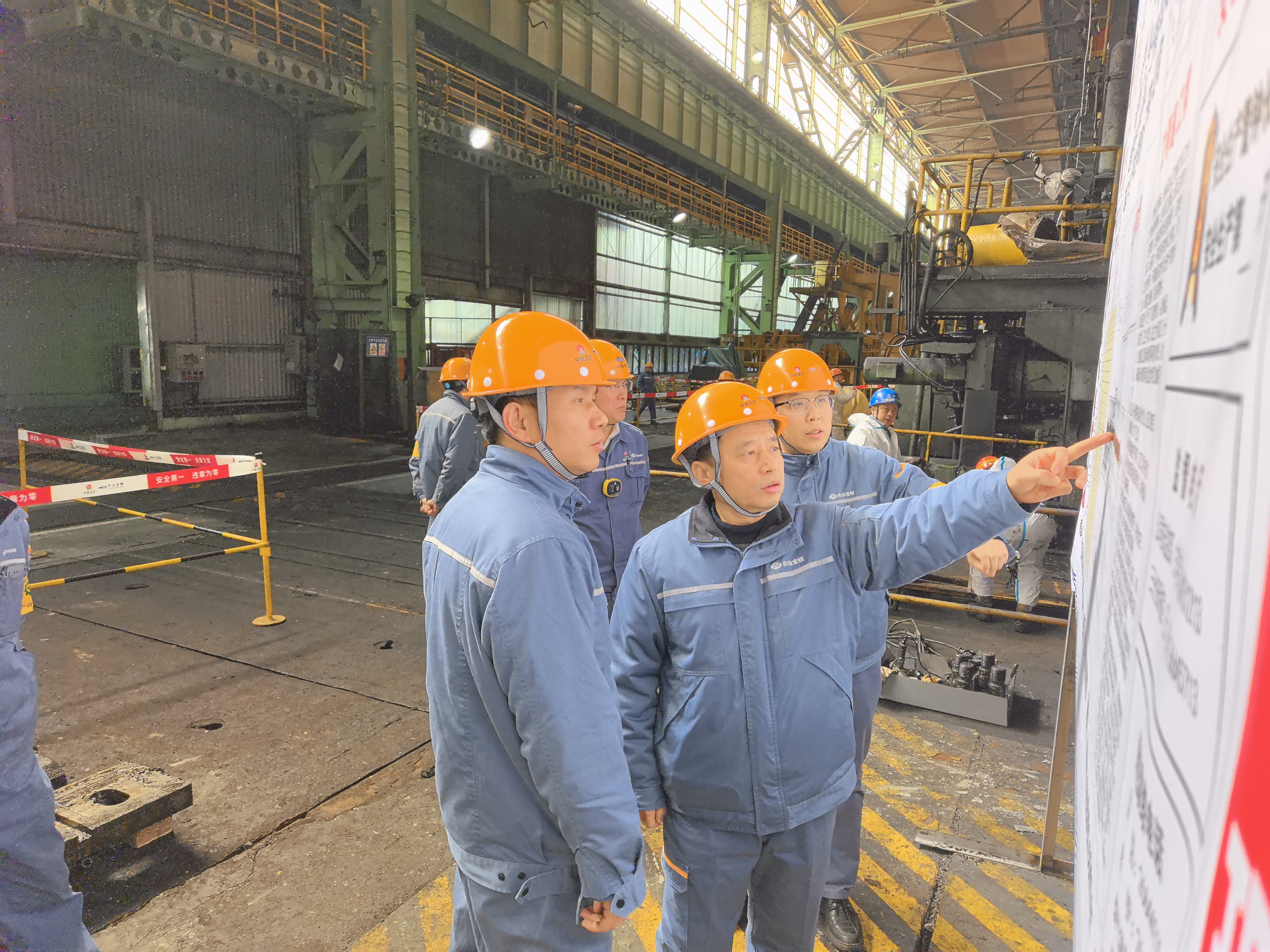 王振智來到第三分公司承接的2050熱軋年修現(xiàn)場,對現(xiàn)場施工組織、標(biāo)化管理、危險源辨識、安措落實以及管理者履職等情況進行檢查。王振智詳細(xì)了解年修策劃和施工進展,對分公司此次系列年修的整體策劃和推進落實給予高度肯定。在煉鋼3號轉(zhuǎn)爐爐殼及托圈優(yōu)化改造項目指揮部,王振智觀看了項目BIM建模動畫演示,了解項目總體情況和關(guān)鍵節(jié)點,隨后來到檢修施工現(xiàn)場,實地查看了高效工裝的應(yīng)用。他指出,要充分利用此次轉(zhuǎn)爐改造機會,積極推進大型轉(zhuǎn)爐及附屬關(guān)鍵設(shè)備更換技術(shù)研究與應(yīng)用,掌握核心競爭力,提升冶金運營服務(wù)能力。